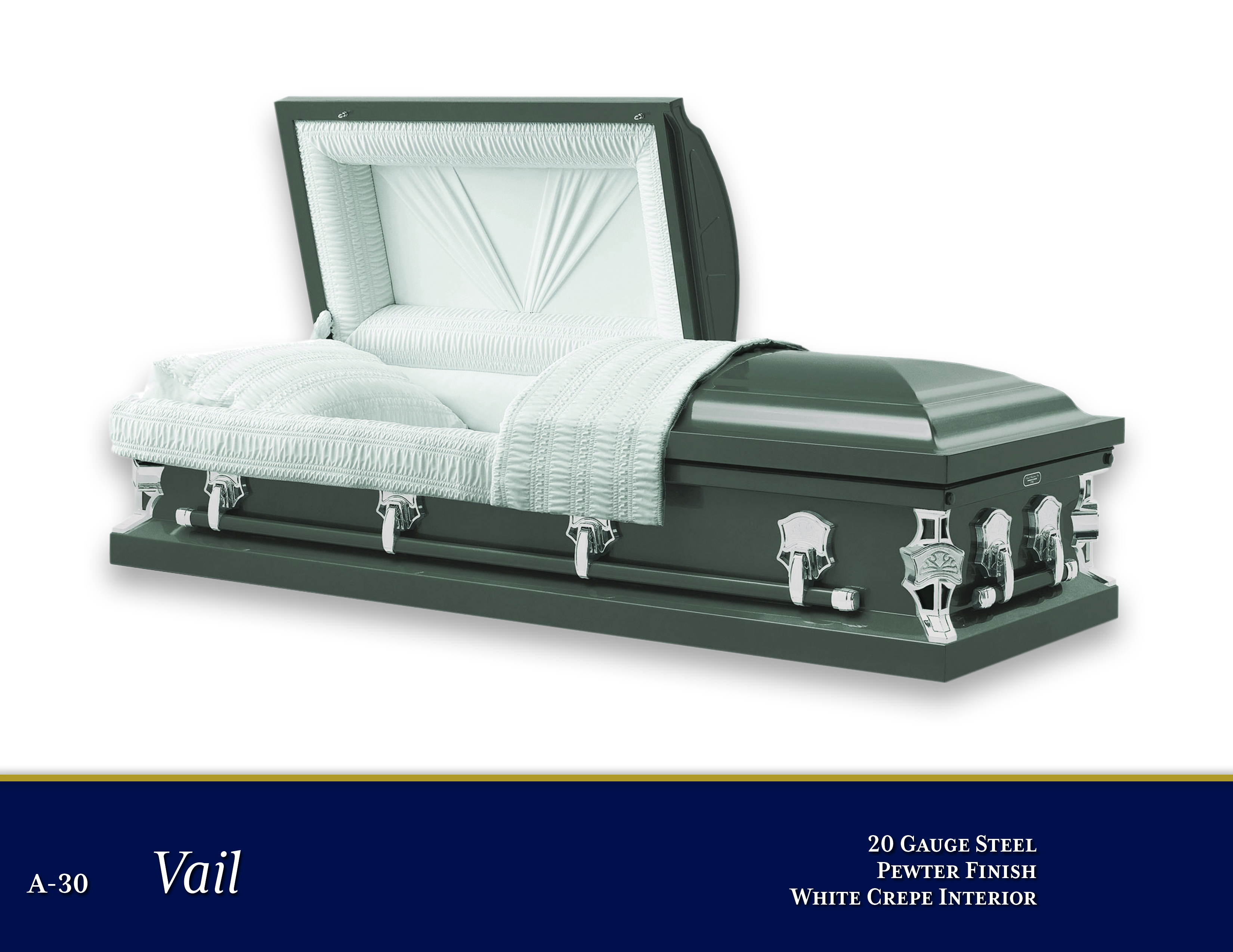 20 Gauge SteelPewter FinishWhite Crepe InteriorOpen Shareable Image