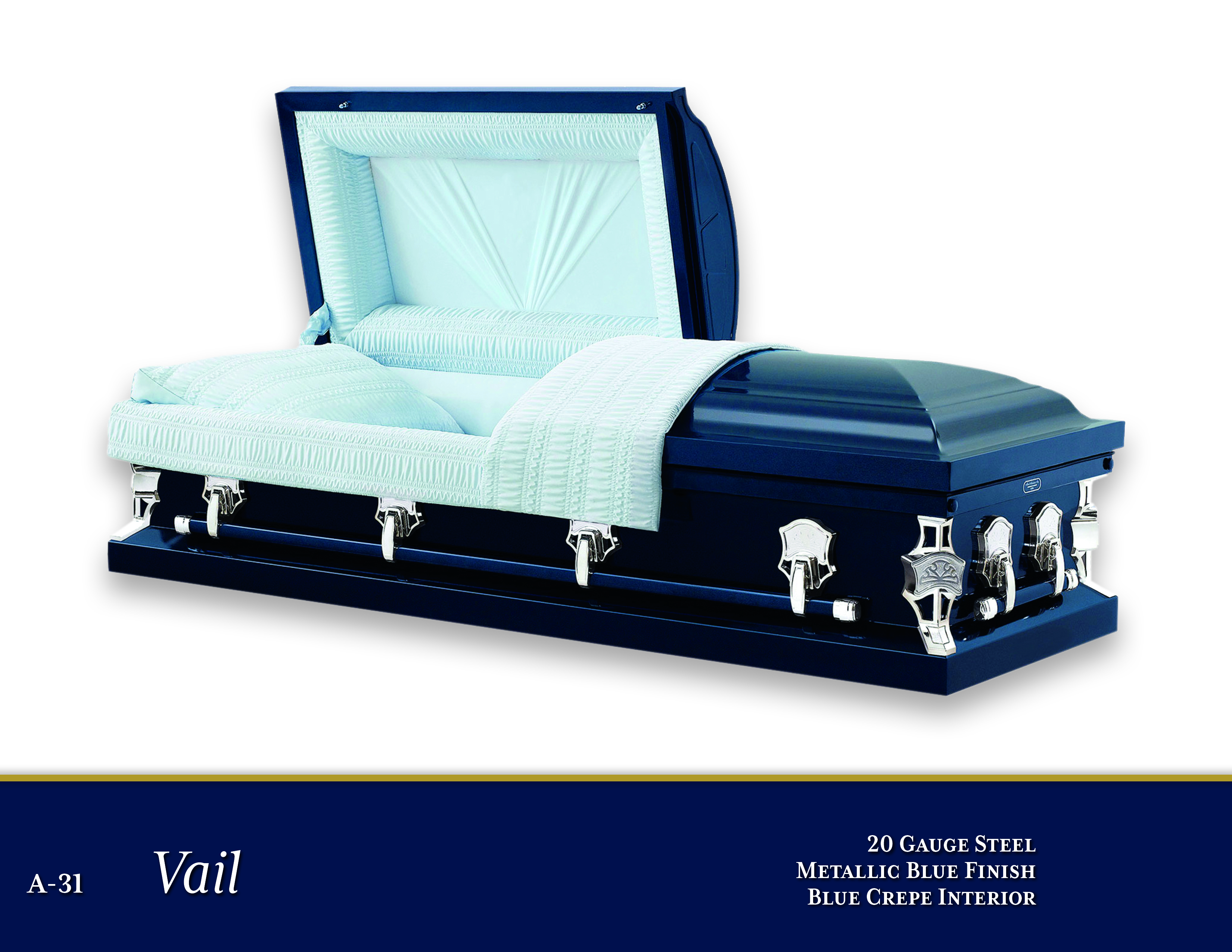 20 Gauge SteelMetallic Blue FinishBlue Crepe InteriorOpen Shareable Image