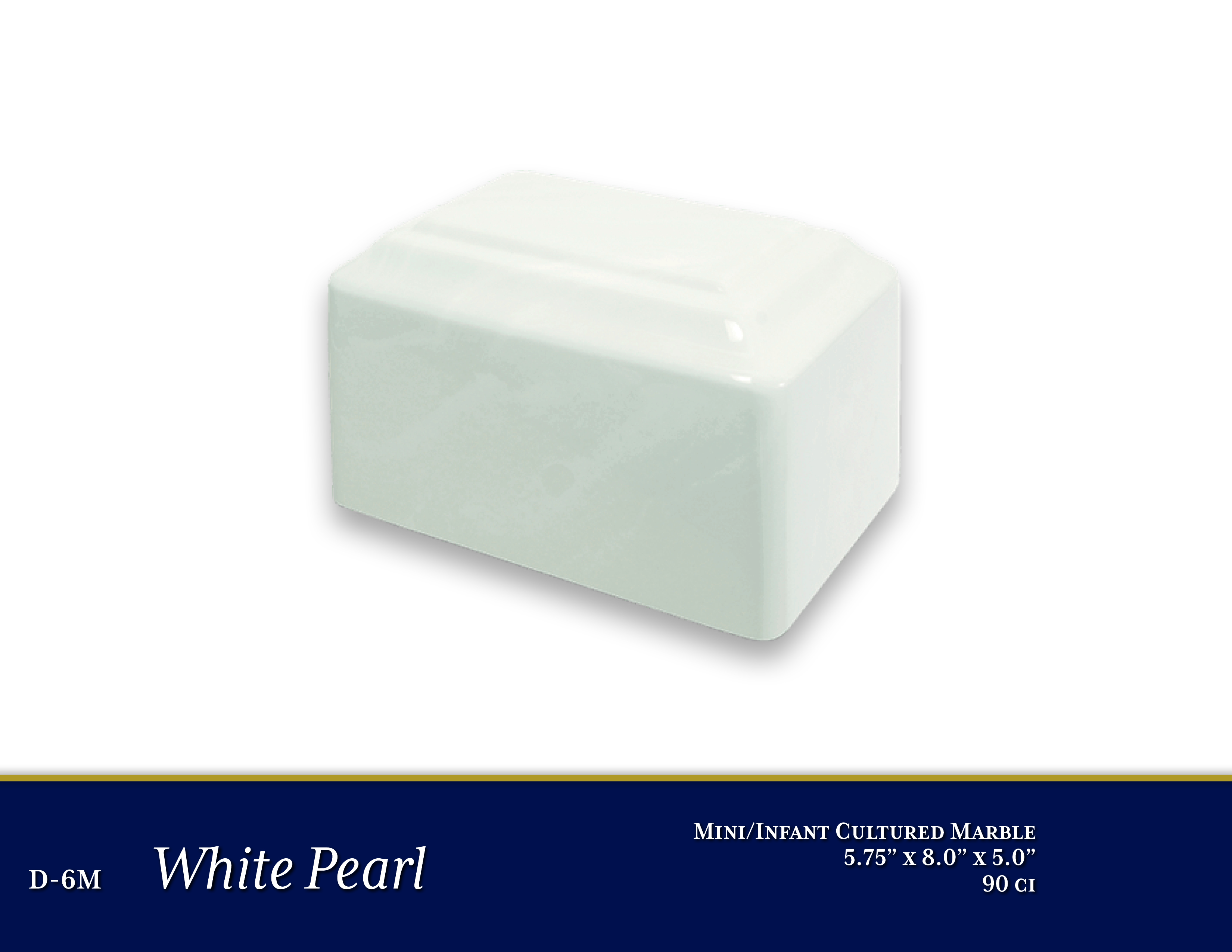 D-6M White Pearl$190.00PriceMini/Infant Cultured MarbleSolid White5.75" x 8" x 5"90 ciOpen Shareable Image