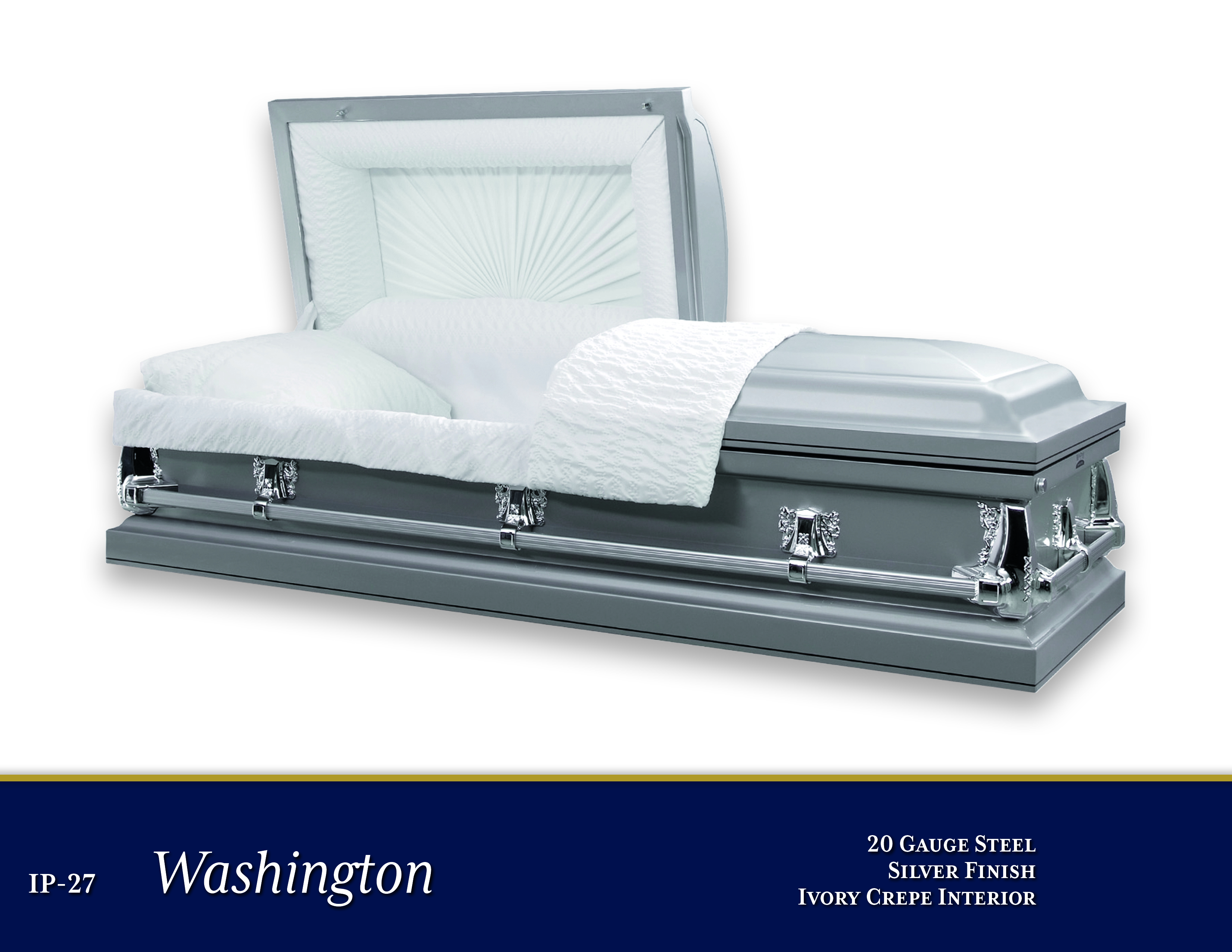 20 Gauge SteelSilver FinishIvory Crepe InteriorOpen Shareable Image