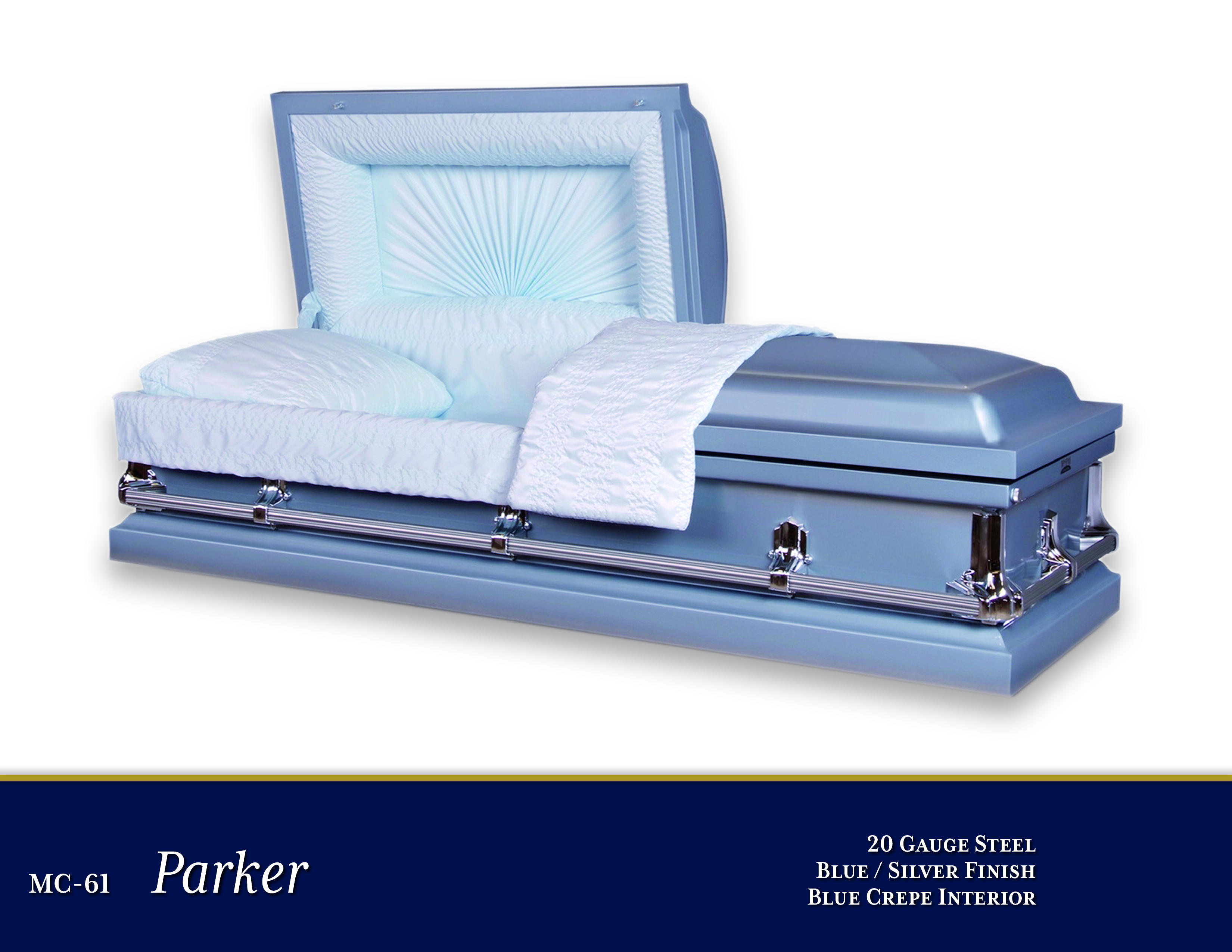 20 Gauge SteelBlue/Silver FinishBlue Crepe InteriorOpen Shareable Image