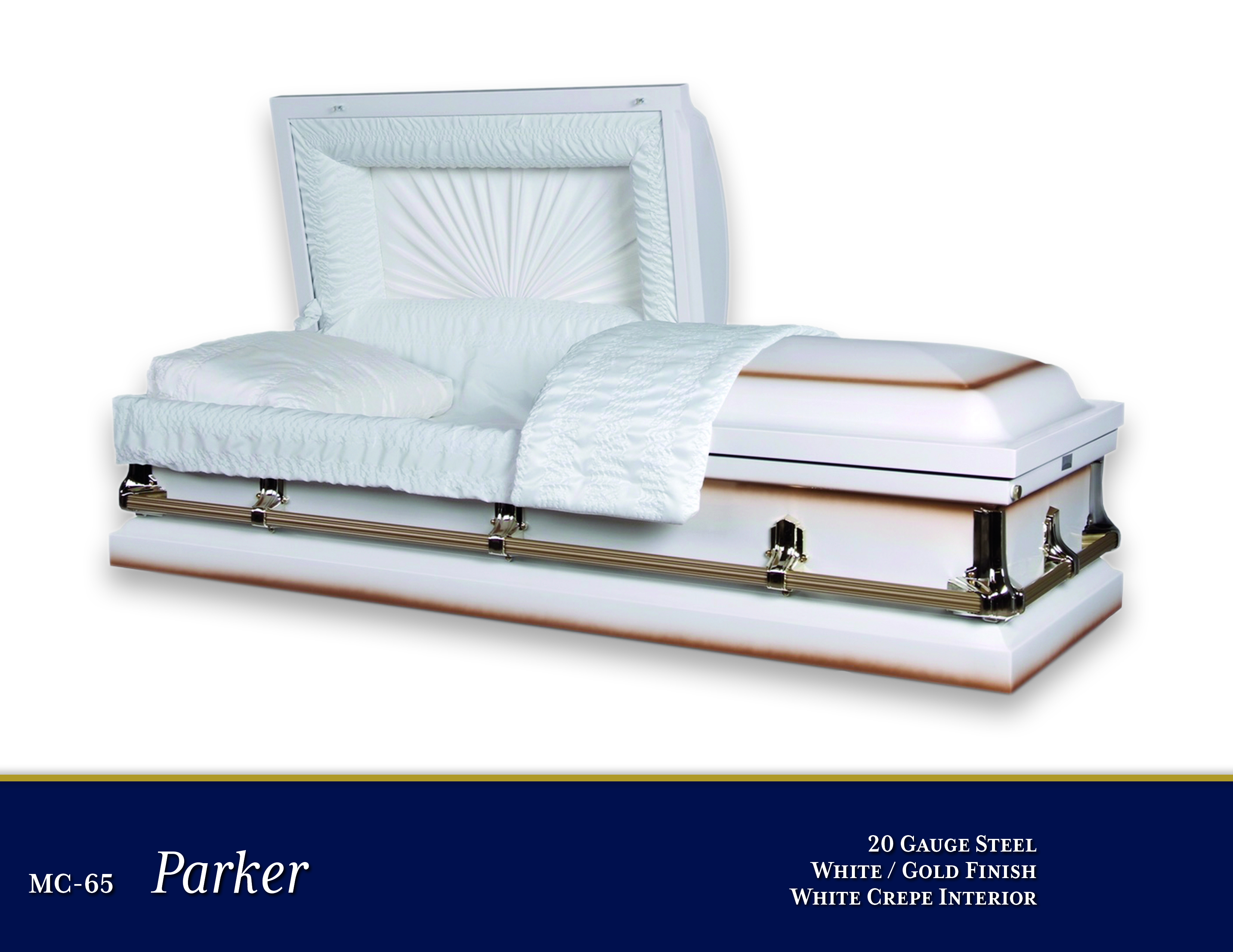 20 Gauge SteelWhite/Gold FinishWhite Crepe InteriorOpen Shareable Image