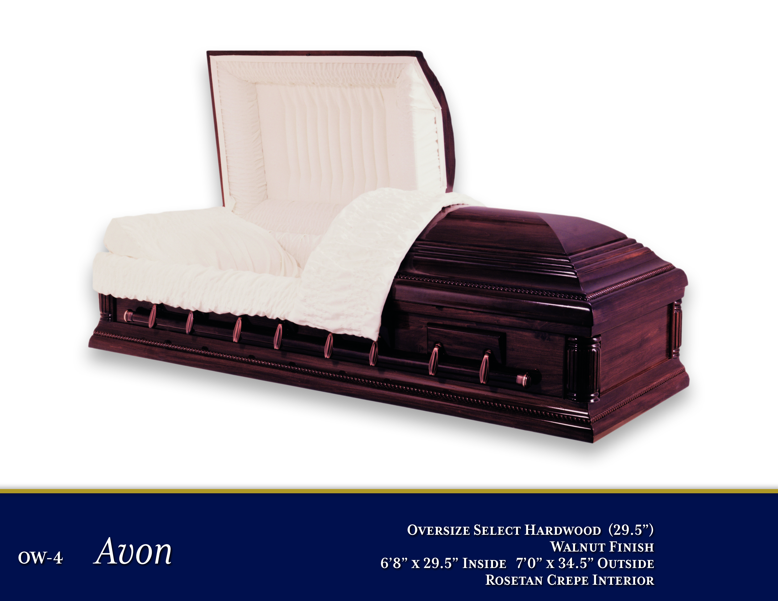 OW-4 Avon 29.5"$4,495.00PriceOversized Select HardwoodWalnut Finish6'8" x 29.5" Inside - 7'0" x 34.5" OutsideRosetan Crepe InteriorOpen Shareable Image